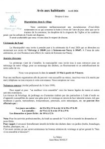 L’avis aux habitants d’avril 2026 est paru vous pouvez le consulter ou le télécharger ici.