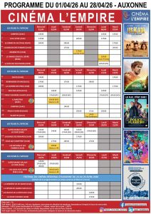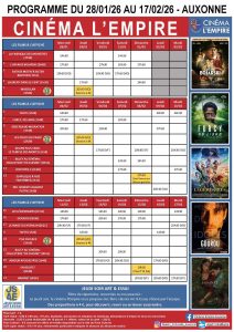 Retrouvez ici la programmation et les horaires des films projetés au cinéma l’Empire à Auxonne.
